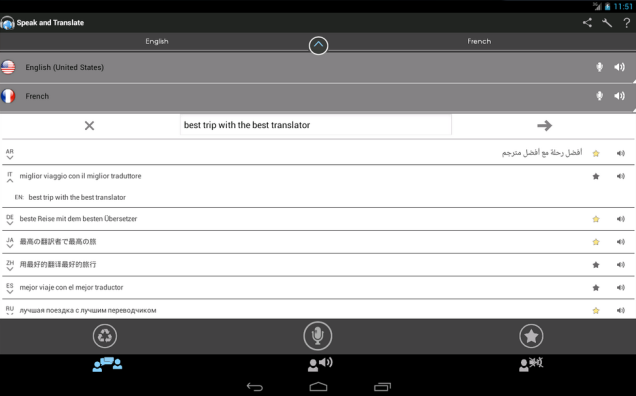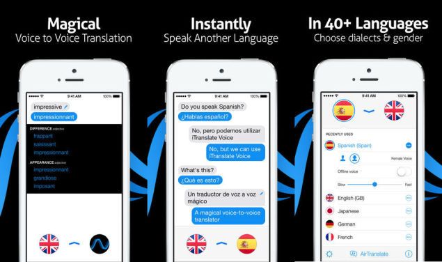 Disponible lamentablemente solo en iTunes, es una de sus aplicaciones más populares. Funciona igual que Speak and Translate, pero introduce una función muy interesante llamada Air Translate. Mediante esa función se pueden enlazar dos teléfonos para hablar con otra persona y que la aplicación traduzca las palabras en tiempo real. Este servicio también permite traducir texto en correos electrónicos, SMS y cuentas de Twitter o Facebook. Cuesta dos dólares. [iTunes]