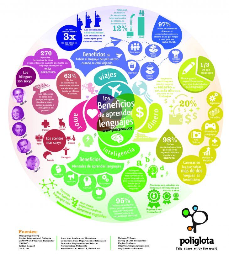 Esta plataforma precisamente diseñó una infografía que hace un resumen de los beneficios de aprender nuevos lenguajes.