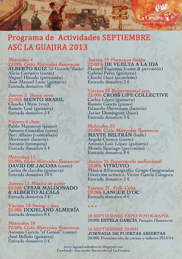 Para más información:http://laguajiradealmeria.blogspot.comFacebook Asociación Sociocultural La Guajira |